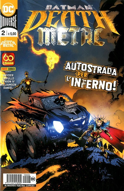 Udite l’urlo sfrenato di Wonder Woman mentre attraversa il Multiverso Oscuro sul monster truck più fuori di testa del mondo! Scaldate le corde della Bat-chitarra per accogliere nella band un certo Cavaliere Oscuro! Ammirate l’evoluzione definitiva del letale Batman che Ride! La voce è di Scott Snyder, la chitarra di Greg Capullo e il concerto è appena cominciato.