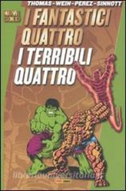 Un grande classico degli anni 70. Il celebre ciclo dei Fab Four scritto da Roy Thomas & Len Wein e disegnato da George Pérez & Joe Sinnott torna in edizione riveduta e corretta. Nelle duecento pagine di questo volume vi aspettano cose dell'altro mondo: l'arrivo di Marvel Boy, il ritorno dei Terribili Quattro, l'infiltrazione del Bruto, Luke Cage contro la Cosa e poi Hulk, Thundra, l'Uomo Impossibile, l'Eliminatore, i Sette di Salem. E perfino una visita negli uffici della Marvel Comics!