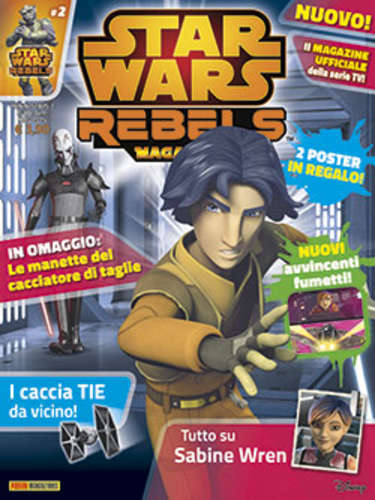 Il secondo numero del magazine ufficiale della serie TV in onda su Disney XD torna in edicola! Tutto su Sabine Wren, il fidato braccio destro di Ezra Bridger, e una scheda sui Caccia TIE! In più tantissimi giochi, storie a fumetti, poster e in regalo, solo per te, le manette del cacciatore di taglie!