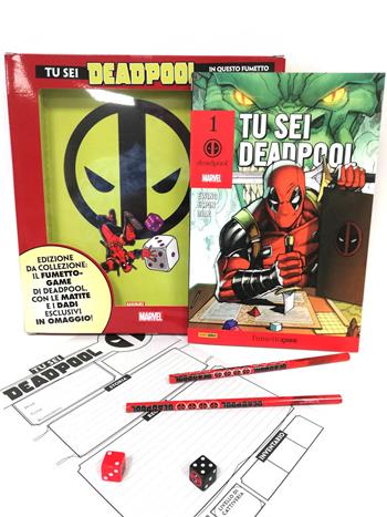 Fra un librogame, una storia a bivi di Topolino e un gioco di ruolo: un’avventura interattiva dove sarete voi a interpretare Deadpool! Una scatola esclusiva contenente il fumetto, i dadi, la matita, la scheda del personaggio tutti griffati Deadpool! In viaggio nel tempo nella storia della Marvel, nei panni di Deadpool! Diventa Wade Wilson: tu sei nato per essere Deadpool!