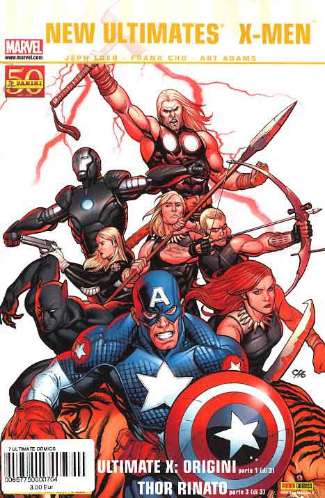Thor è tornato! Brutte notizie per gli Ultimates. Sono stati appena sconfitti da Loki e l’Incantatrice, che hanno invaso la Terra con un esercito di Troll. Non rimane che una speranza: il ritorno del dio del Tuono direttamente dal Regno dei Morti di Hela! Martellate, tuoni e fulmini per le firme di Jeph Loeb e Frank Cho. Atmosferico!