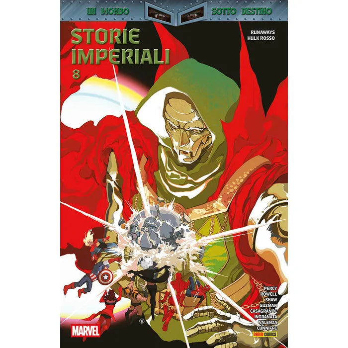 Imprigionato, torturato, braccato: per Hulk Rosso è il momento di contrattaccare, a costo di radere al suolo Latveria! E mentre Nico Minoru scopre il suo vero retaggio magico, il maggiordomo-Doombot dei Runaways rischia di soccombere al Dottor Destino! Il gran finale della serie legata a Un mondo sotto Destino… e l’inizio di una nuova era per l’Universo Marvel!