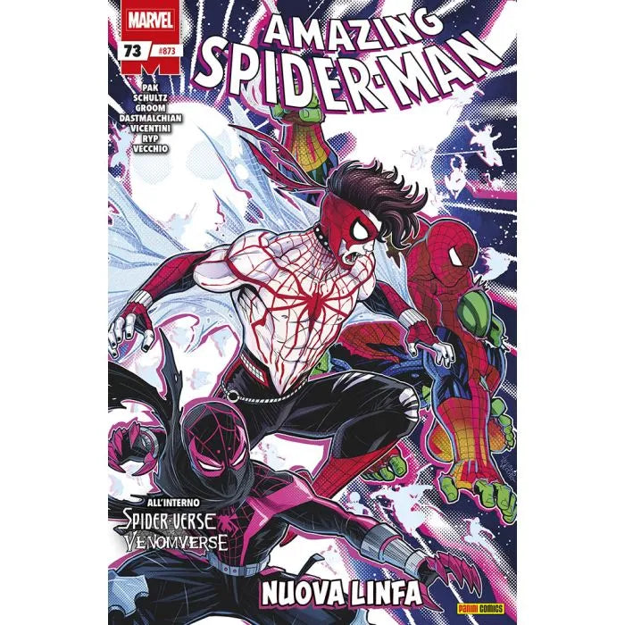 Una guerra del Multiverso si profila all’orizzonte con i Ragno-eroi costretti a scontrarsi con i simbionti del Venomverse! Incontrate i nuovi Ragno-eroi: il Conte Parker, Spider-Prowler e Spider-Hulk, tutti pronti a battersi a colpi di ragnatele! Il Venomverse combatte per proteggere la sua mente-alveare da un attacco che è in grado di porre fine a tutto ciò che conosce. Entrano in scena Venomouse, Katie Power e un nuovo simbionte di Eddie Brock che potrebbe ribaltare le sorti della battaglia!